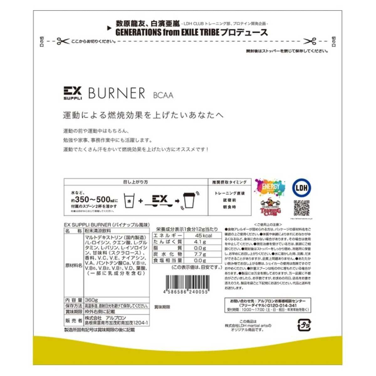商品名:EX-SUPPLI BURNER パイナップル風味 360g